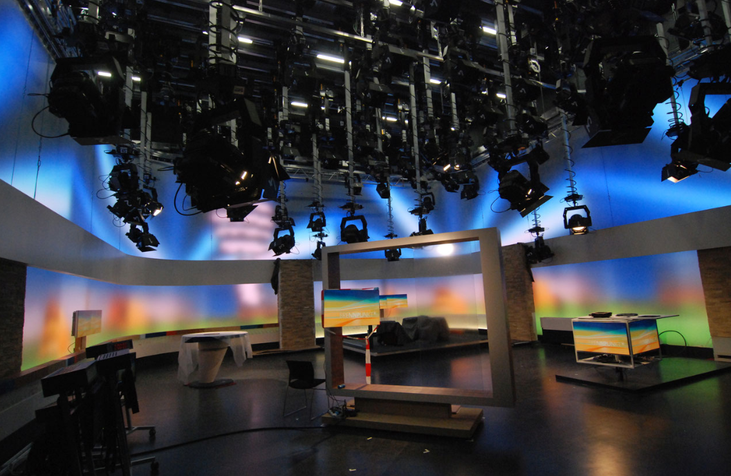 Die planerische Umsetzung der erforderlichen Infrastrukturen im Bereich der Studiodecken erfolgte mit den Präzisions-Schienensystemen TV-TRACK TT 200 und angeflanschten Vahle-Stromschienen. Sowohl die Teleskopleuchtenhänger für die Lichttechnik und die Medientechnik wie auch die Punktzüge werden in jeweils eigenen Schienensystemen verfahren.